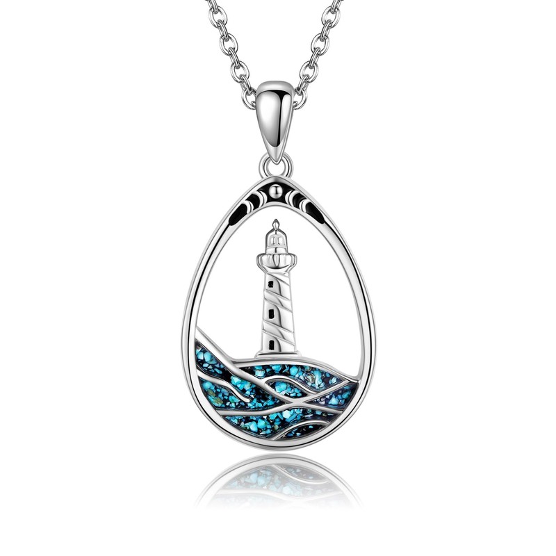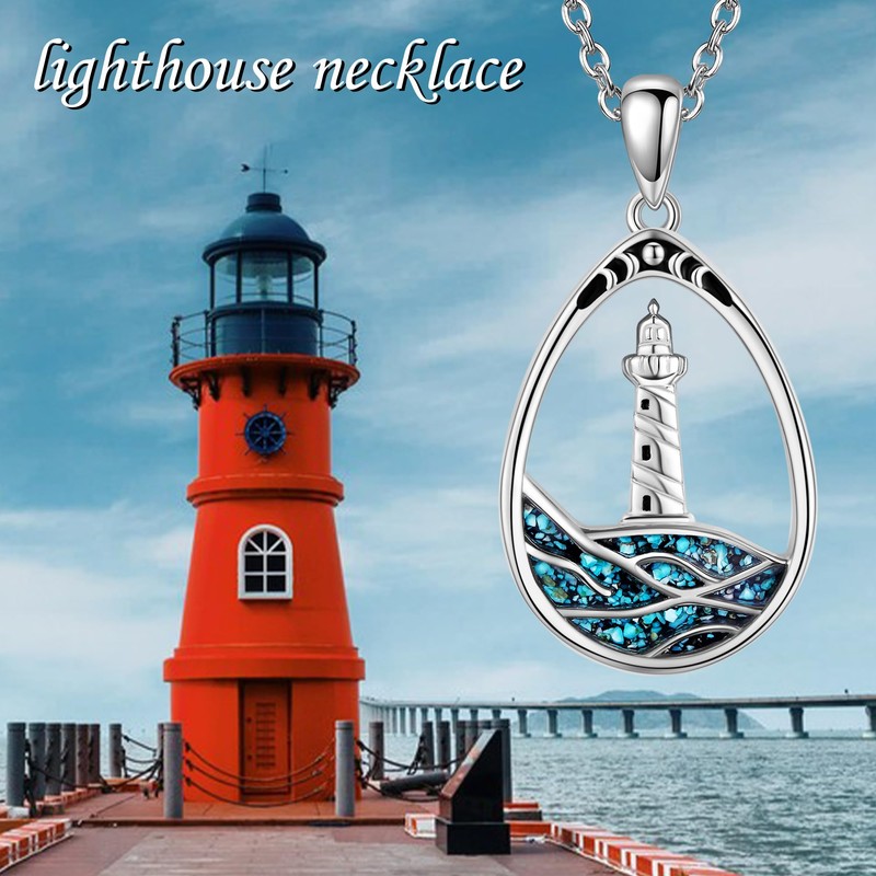 CUPENDA Lighthouse Wave Necklace Sterling Silver Ocean Pendant Necklace Turquoise Jewelry Gifts for Women