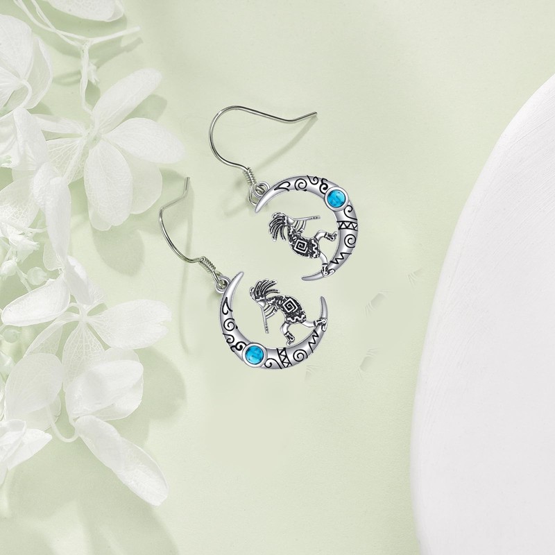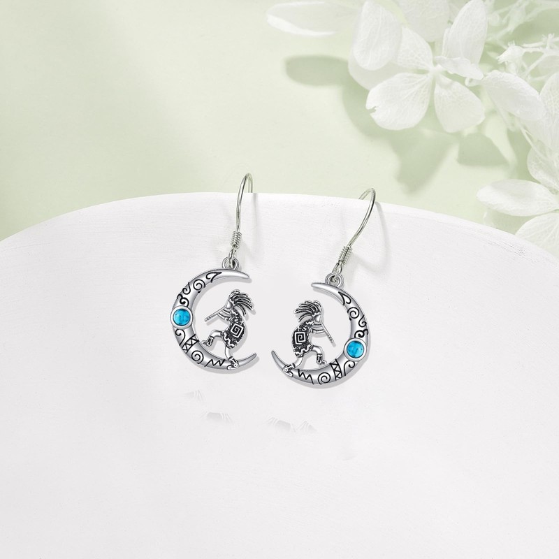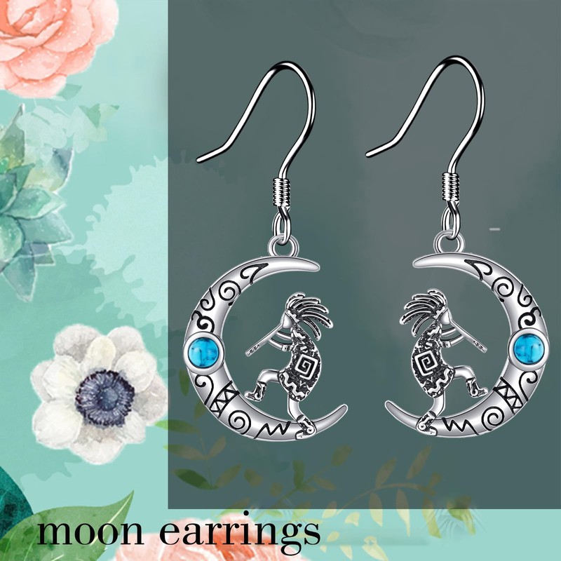 CUPENDA Moon Kokopelli Earrings Sterling Silver Turquoise Southwestern Kokopelli Dangle Drop Earrings Native American Jewelry for Women