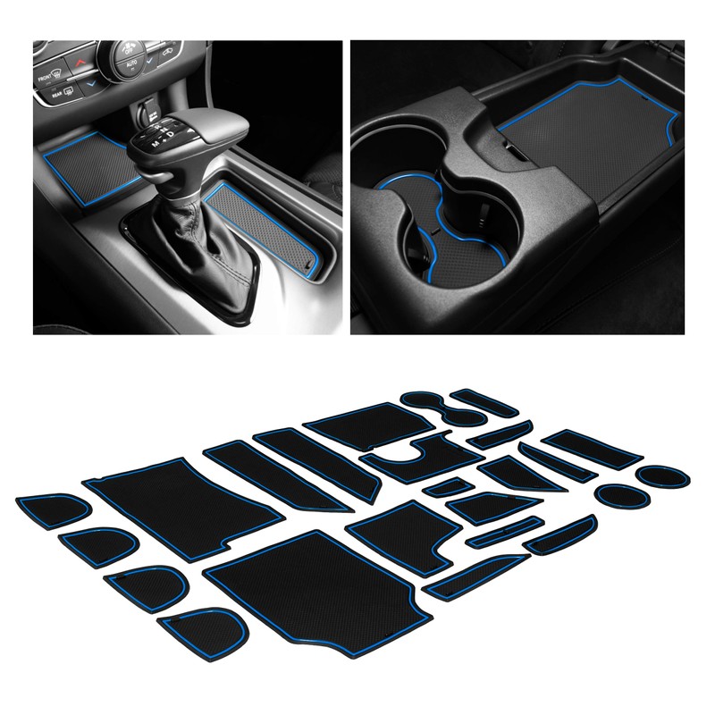 CupHolderHero Fits with Dodge Charger and Chrysler 300 Accessories 2015-2023 Premium Custom Interior Non-Slip Anti Dust Cup Holder Inserts, Center Console Liner Mats, Door Pocket 26pc Set (Blue Trim)