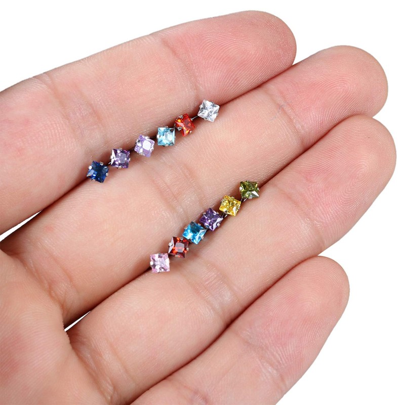 Cupimatch 12 Pairs Stainless Steel CZ Ear Piercing Stud Earrings Set for Women Girls,3MM