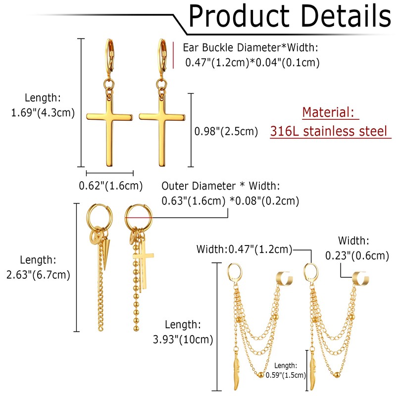 - ♥ SIZE-- Cross earring: 1.69"(4.3cm),feather chain earring: 3.93"(10cm),cone chain earring: 2.63"(6.7cm)