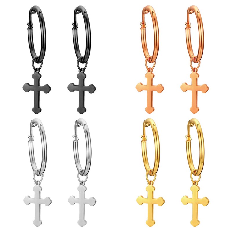 Cupimatch 4 Pairs Women Men Stainless Steel Clip Hinged Hoop Earrings Set with Cross Dangle, Silver Black Gold Rosegold