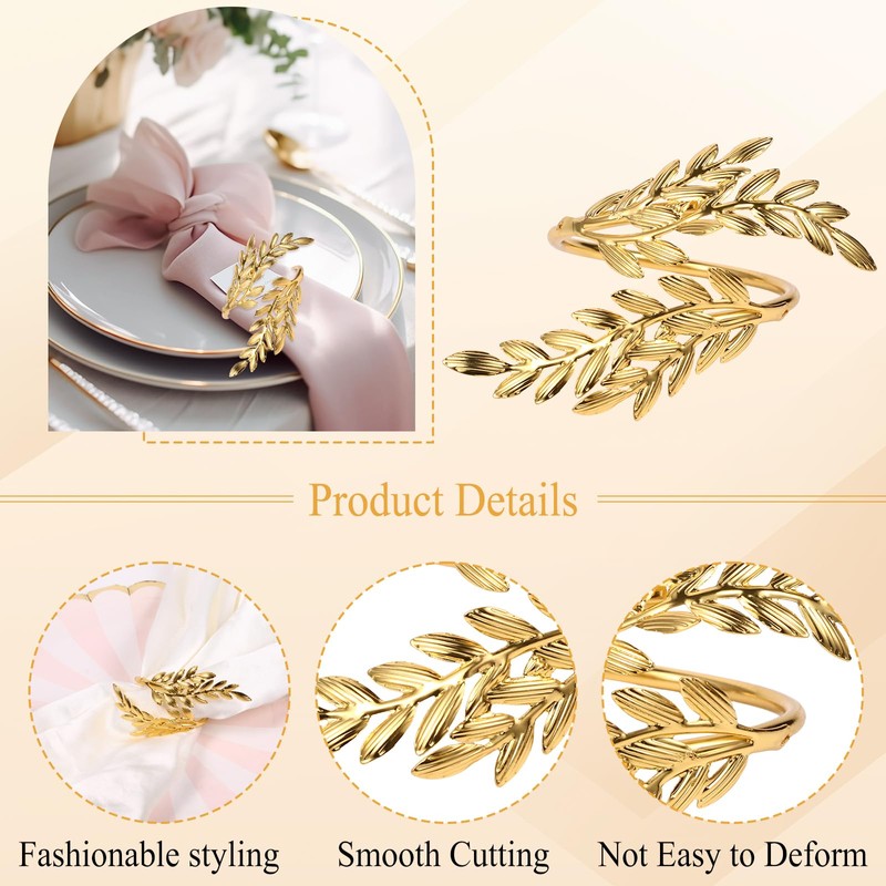 - ELEGANTES DESIGN: Die goldenen Serviettenringe in Ährenform verleihen Ihrer Tischdekoration einen Hauch von Eleganz und Raffinesse. Das zeitlose Design mit glänzender Oberfläche wertet jede Mahlzeit auf und sorgt für einen stilvollen Eindruck bei Ihren Gästen. Perfekt für besondere Anlässe und alltägliche Mahlzeiten