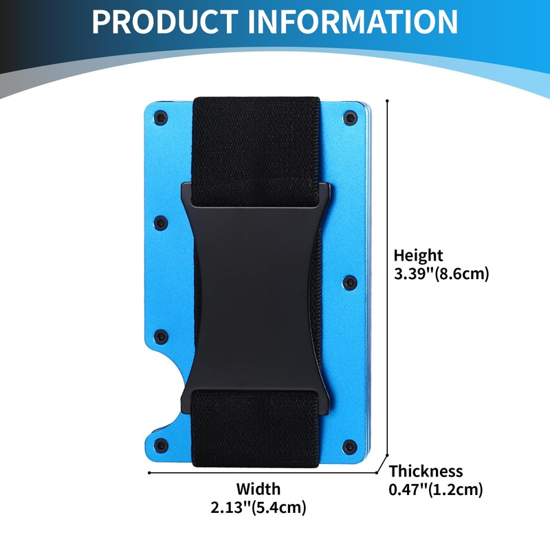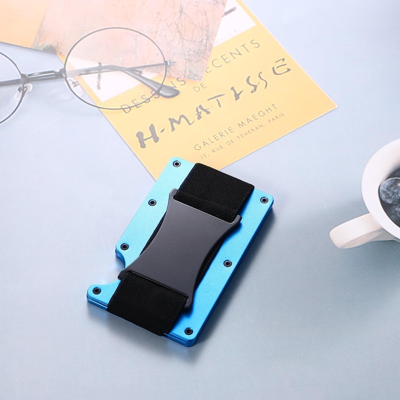 Cupimatch Men Ultra-Thin RFID Wallet: Blocking Aluminum Wallet for Men Slim Money Clip Card Holder with Elastic Band (Blue)