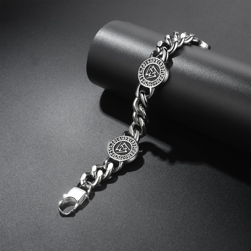 - Viking style: This men's Viking bracelet is inspired by the design elements of the Vikings. With a stainless steel cuban chain, it brings you a powerful and individual fashion that highlights you on any occasion with a unique vintage charm.