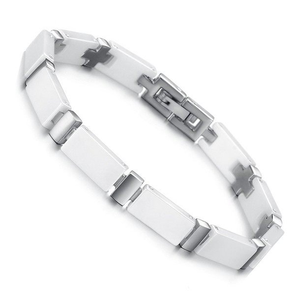 Cupimatch Women Elegant 6.5MM White Ceramic Stainless Steel Cross Link Chain Bracelet Bangle Gift