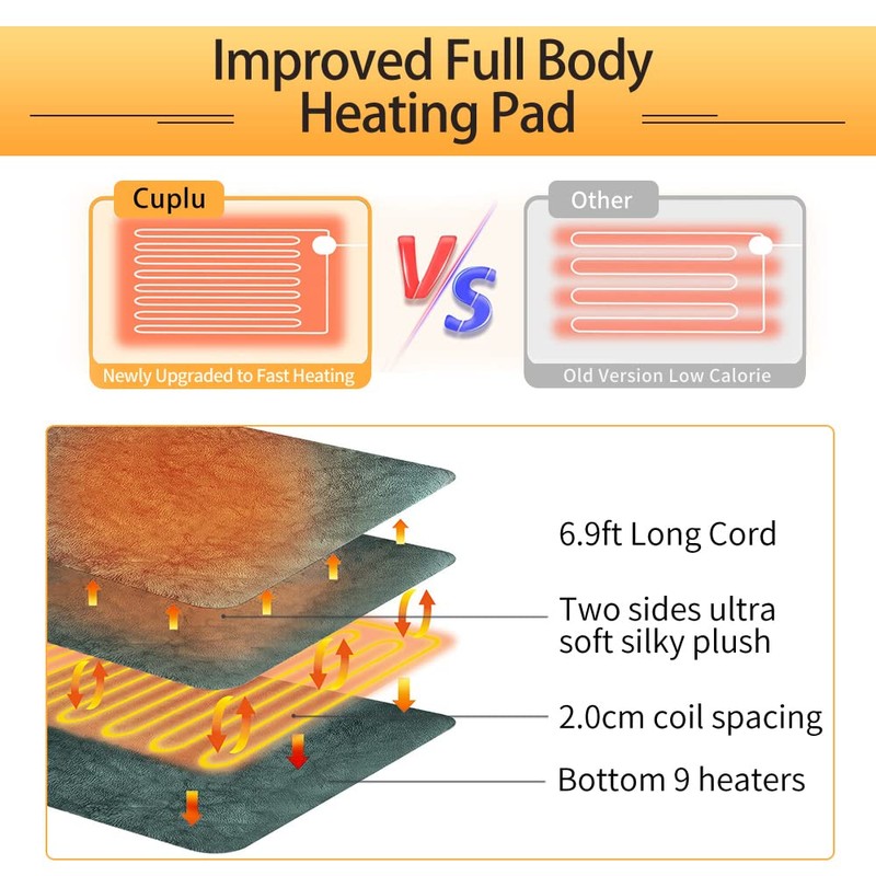 - 🔥[Full Body Relief] The 40” x 40” heating pad for the foot is designed for versatile use. The foot heater provides full body relaxation, fast heating and soft structure to embrace different body areas like the neck, back, abdomen, or legs snugly.