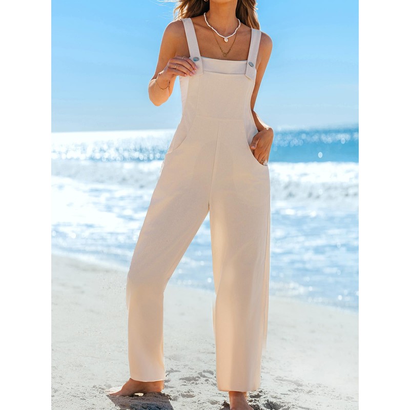 - [Unique Design]: The Daisy Chain Beige Jumpsuit is ready for your next sunny adventure! Featuring a square neckline, sleeveless design, and wide leg fit, this jumpsuit is all about comfort with a touch of sweetness.