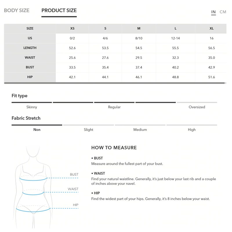 - Perfect Sizing: Available in XS, S, M, L, XL. Please refer to our size chart for specific measurements to achieve the perfect fit.Model Wearing Size: S. ( Height: 5' 6'' in / 168 cm, Bust: 34 in / 86 cm, Waist: 25 in / 63 cm Hips: 30 in / 76 cm)