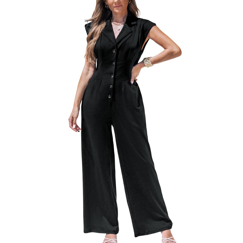 - Unique Design]: Step out in style with our Women's Black Button-Up Wide Leg Jumpsuit! This chic sleeveless design features a flattering wide-leg silhouette, perfect for both casual outings and more formal occasions. The button-up front adds a touch of elegance, making it a versatile addition to your wardrobe. With its comfortable fit and modern style, this jumpsuit is ideal for summer parties or daily wear. Elevate your look effortlessly with this must-have outfit!
