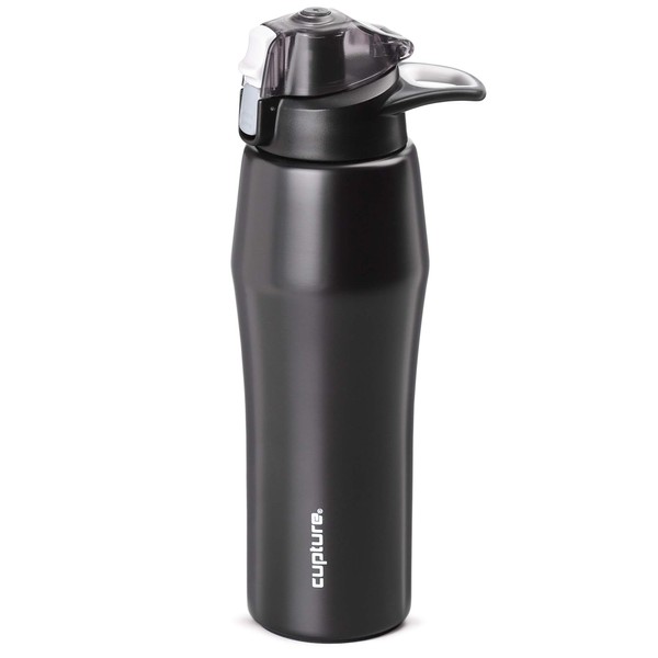 Cupture Action Water Bottle Flip Top with Handle - 22oz Stainless Steel Vacuum-Insulated (Black)