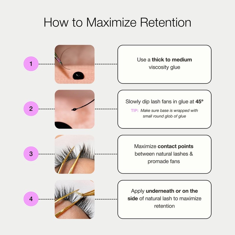 • WHY CURACORO PROMADES — Handcrafted from the finest PBT material, these lashes are soft, sleek, and feature a petite base for easy-peasy application. Loved by lash artists around the globe, our Promade lash fans set the bar high with unmatched quality and performance.