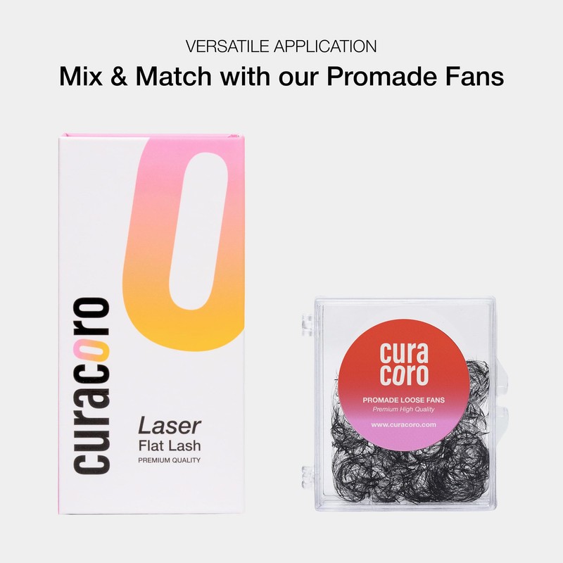 Curacoro Laser Flat Lash Extensions – Lightweight & Long-Lasting Flat Lashes with Laser-Enhanced Adhesion | True Black C, CC, D Curl 7–15mm Eyelash Extensions for Professionals