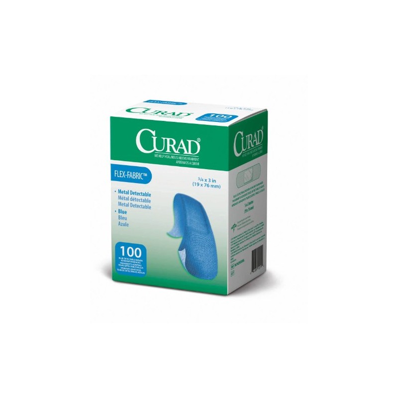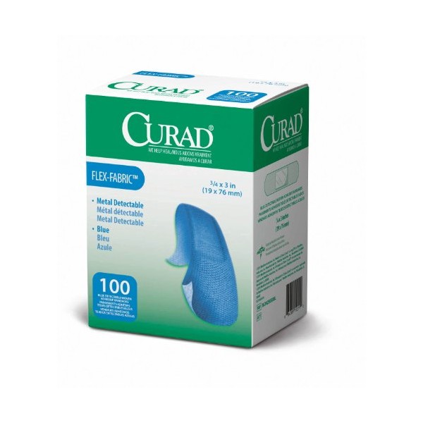 CURAD Food Service Metal Detectable Blue Fabric Adhesive Bandages 3/4" x 3", Pack of 100