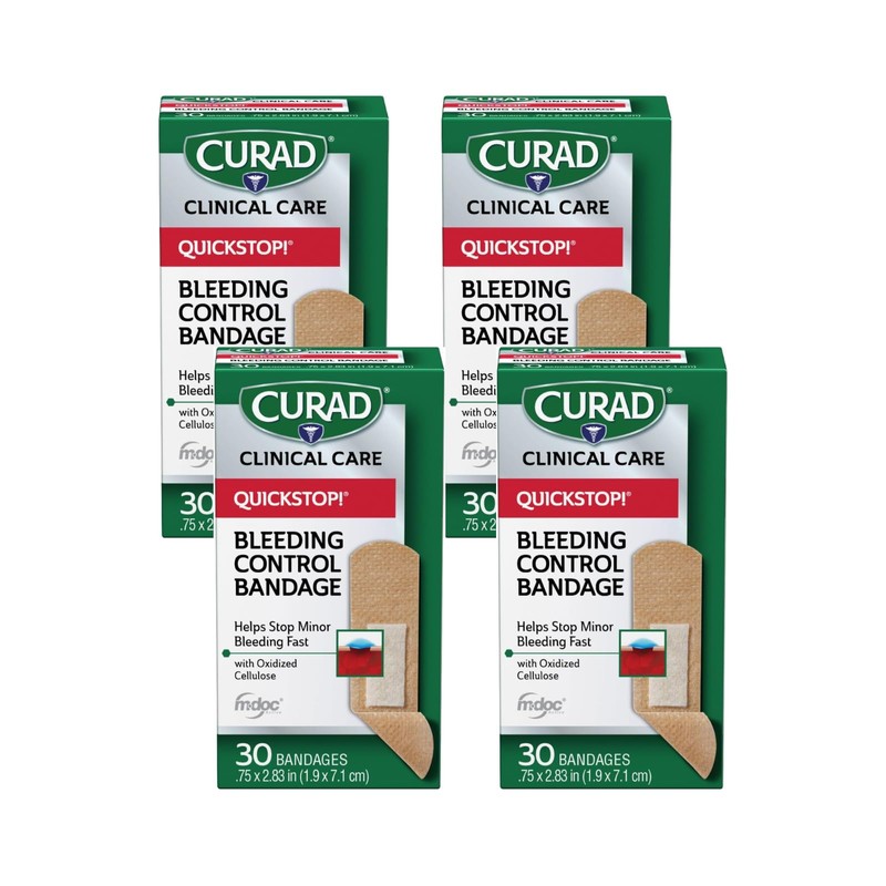 Curad QuickStop Bleeding Control Bandages, Assorted Sizes, 30 Count (Pack of 4)