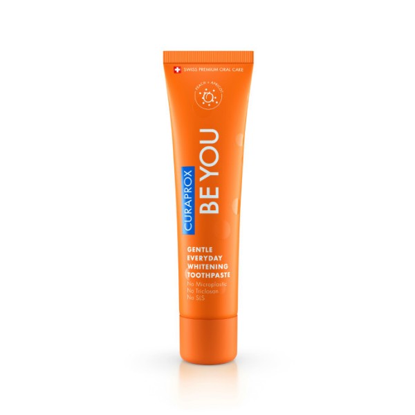 Curaprox Be You Peach & Apricot Whitening Toothpaste is a daily toothpaste with peach and licorice flavor, combined with notes of fresh menthol for daily oral hygiene and fresh breath.