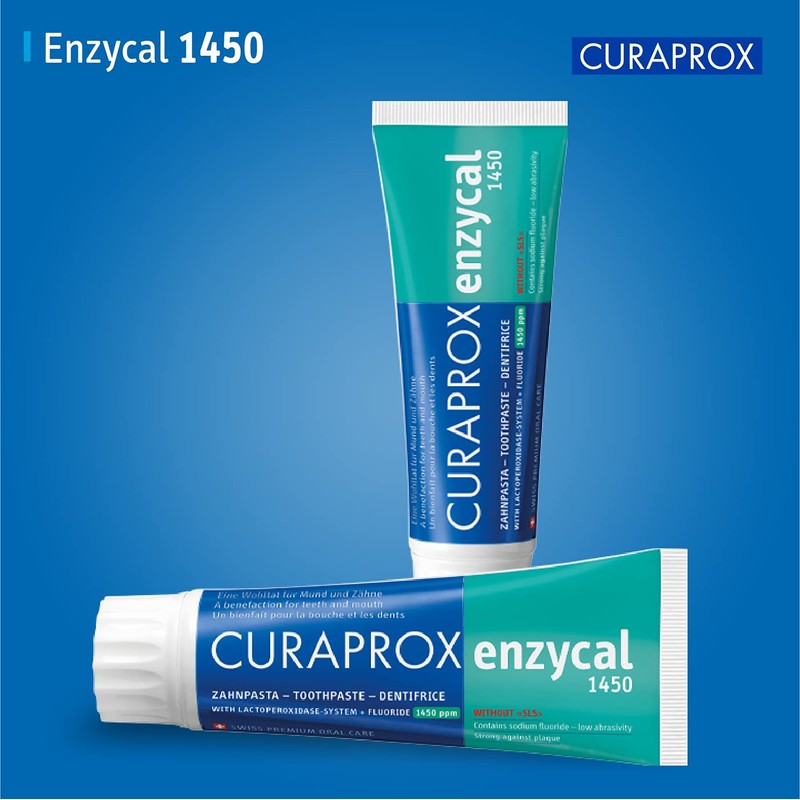 Curaprox Enzycal 1450 Toothpaste with 1450 ppm Fluoride, SLS Free, Extra Gentle on Gums, 75 ml, Pack of 4 (4 x 75 ml)