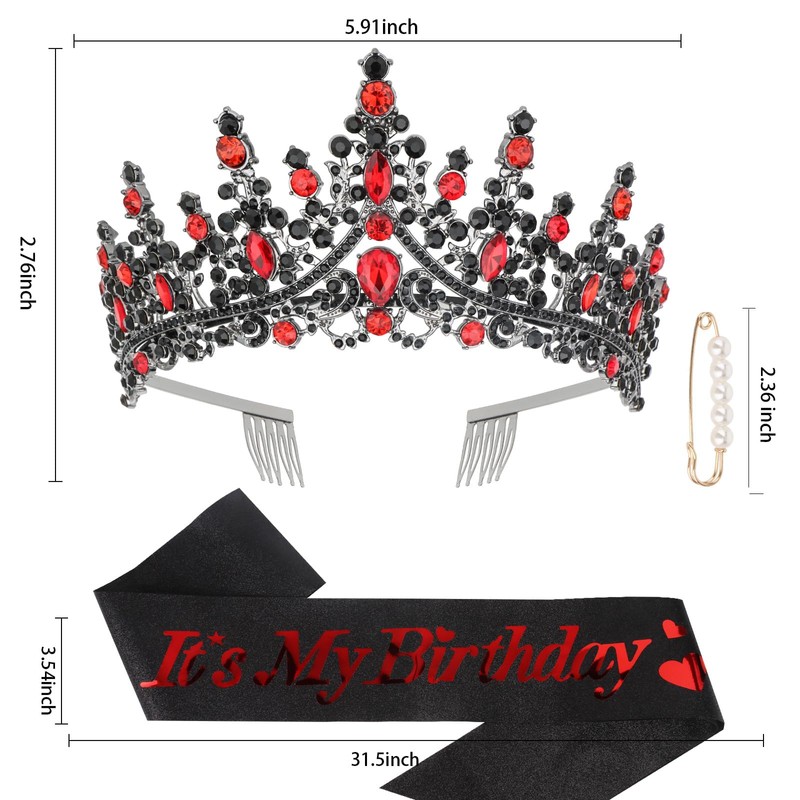 - BEAUTIFUL & ELEGANT: Black and red crystal princess crown and sweet It's My Birthday sash will make you the center of attention on your special day. It’s the perfect finishing touch for your birthday look and make you more glamorous. Enjoy the compliments it will bring you at the party