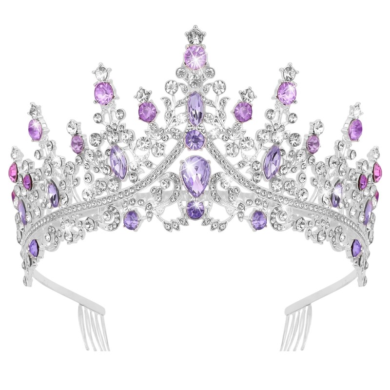 CURASA Purple Tiaras for Women Silver Princess Crown Birthday Tiara for Little Girls Quinceanera Crown Queen Crowns Wedding Tiaras for Bride Tiaras and Crowns for Women Valentine Bridal Pageant