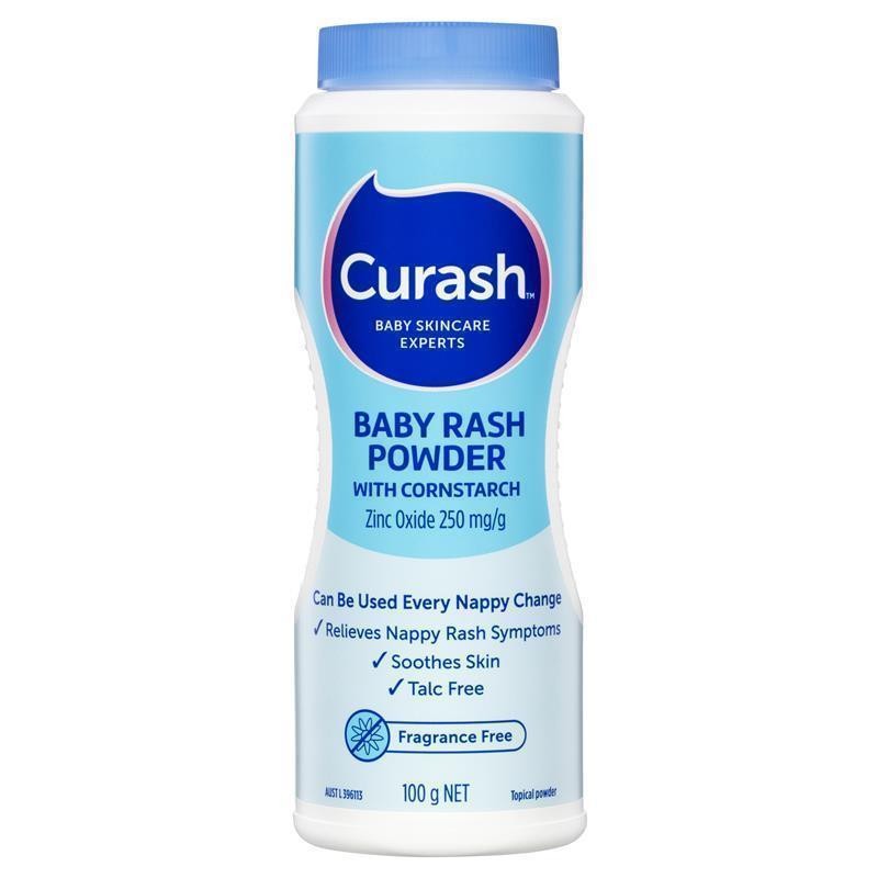 Curash™ Baby Rash Powder with Cornstarch relieves nappy rash symptoms and soothes and calms skin.