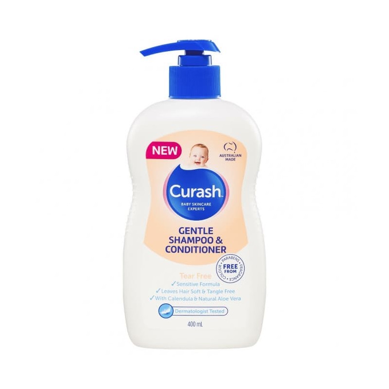 CURASH Gentle Shampoo & Conditioner enriched with natural Aloe Vera, and Calendula, will help to moisturise baby's scalp and leave hair feeling soft, shiny and tangle free. It has a mild tear free formula ideal for sensitive skin to gently cleanse and condition baby's hair and scalp without drying.