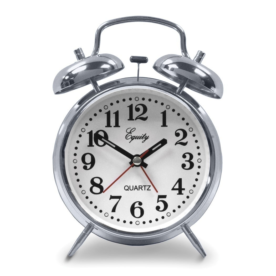 Product Description: Silver-Tone Twin Bell Analog Quartz Alarm Clock