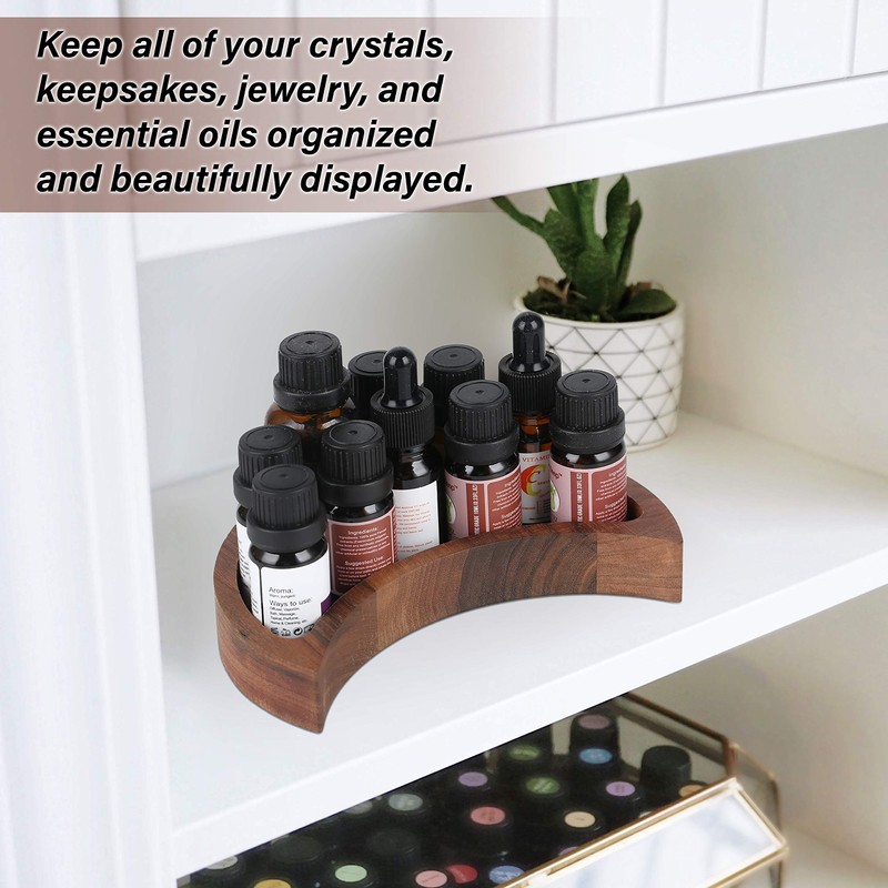 - ESSENTIAL FOR YOUR OILS - Keep all your favorite essential oils at your fingertips and displayed proudly in this crescent moon. The gentle curve of the moon was created to not only replicate the moon phase, but to be able to store all of your favorite essential oils in the same place, keeping them safe and readily available.