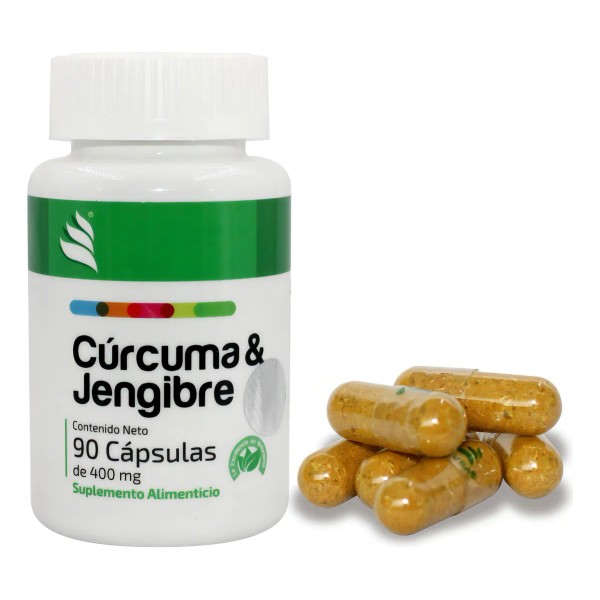 - Cápsulas de cúrcuma en frasco de 90 unidades.