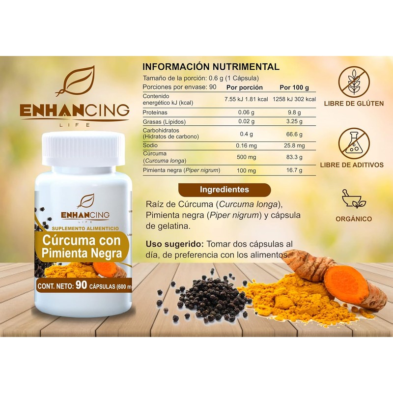 - 🌟 Cada cápsula contiene 500 mg de Curcuma ➕ 100 mg de Pimienta Negra 💊, todo actuando en sinergia para tu beneficio. 😲 Con la dosis suficiente para brindarte los mejores resultados.