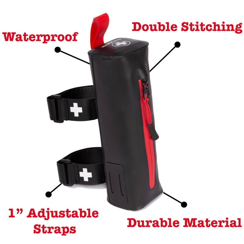 CureIT Bike First Aid Kit for Cyclist's, Compact Waterproof Case, Attaches to Bike Frame, Essential Supplies for Trauma & Emergencies, Black Red