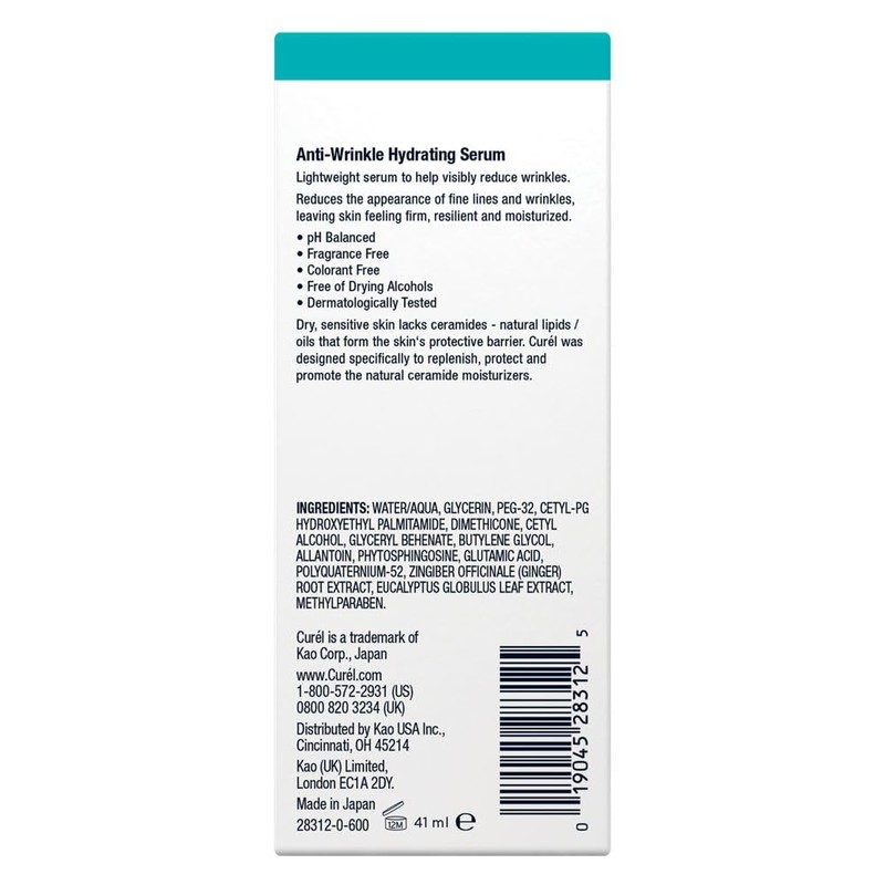 Curel Japanese Skin Care, Anti-Wrinkle Hydrating Serum, Lightweight Serum, Fragrance Free & Colorant Free, For Sensitive Skin, 1.3 Oz