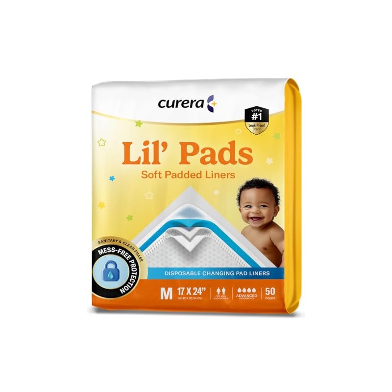 Curera Lil' Pads Premium Soft Padded Liners 17”x24” [50-Count] Disposable Ultra Absorbent Baby Changing Pads