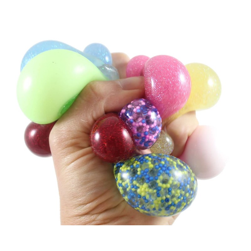 Curious Minds Busy Bags 8 Mini Stress Balls - 4 Glitter, Metallic, Confetti, Glow in Dark 1.5" Stress Ball - Ceiling Sticky Glob Balls - Squishy Gooey Shape-able Squish Sensory Squeeze Balls