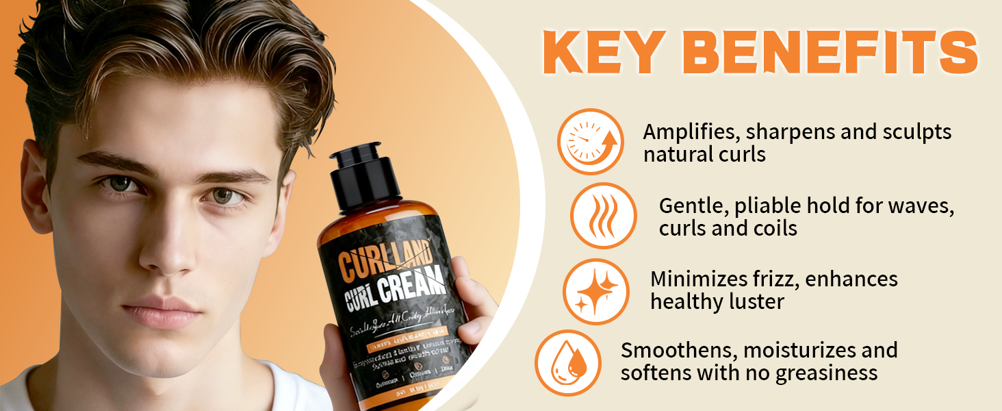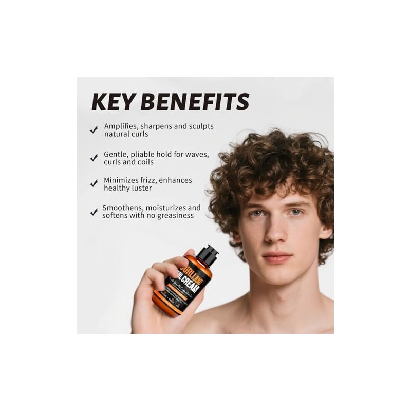 - Moisture - Locking Curl Cream for Men: Loaded with nourishing Limnanthes Alba Seed Oil, it hydrates dry curls without greasiness. Pair with Sea Salt Spray for Hair to set styles with flexible hold—say goodbye to flat, frizzy hair