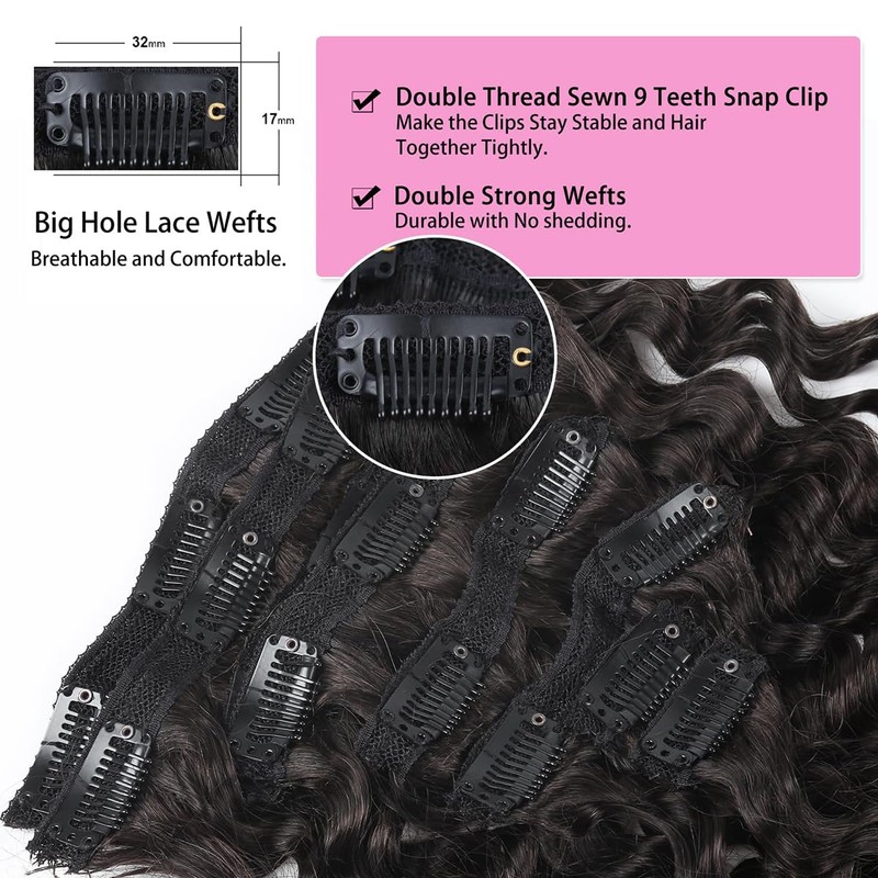 Curly Clip in Hair Extensions Real Human Hair 20 Inch 8PCS 120g Unprocessed Deep Water Wave Double Weft Hairpieces for Women Seamless Clip Ins Extensions Dark Brown