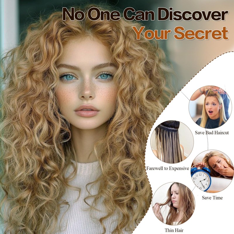 - [Beautiful Curly Hair Extensions] :The curls of these clip in hair extensions are designed to look beautiful and natural,Designed with seamless wefts that lay flat on your scalp, can blend perfectly with your hair and look natura,Others will not be able to tell that your hair is fake.