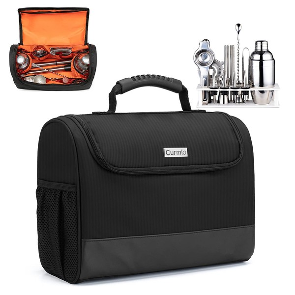CURMIO Bartender Bag Cocktail Set Storage Carrying Case, Black