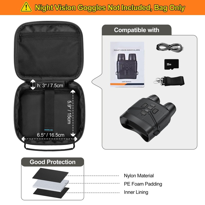 • [WELL MADE] Good quality nylon material with thick padding around provides better protection for digital night binoculars. (Bag only, accessories not included)