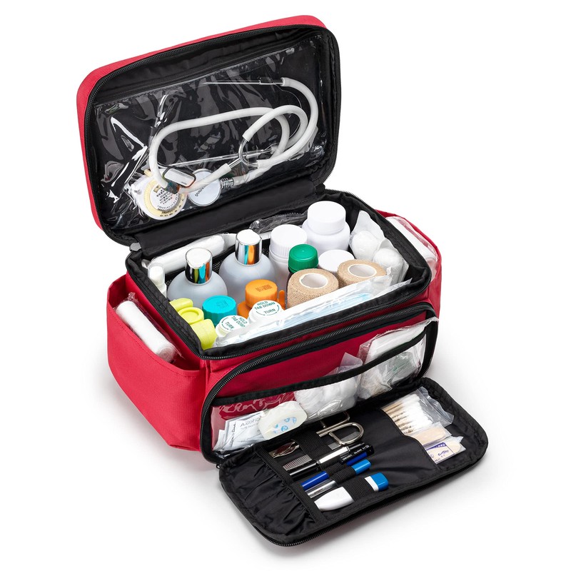 - MULTI-PURPOSE POCKETS: Internal transparent zipper pocket easy for you to access medical supplies. The front compartment has 1 visible pocket and 6 elastic-loop with bottom slots for keeping forceps, tweezers, thermometer, pens. 3 external pockets provide extra space to carry what you want.