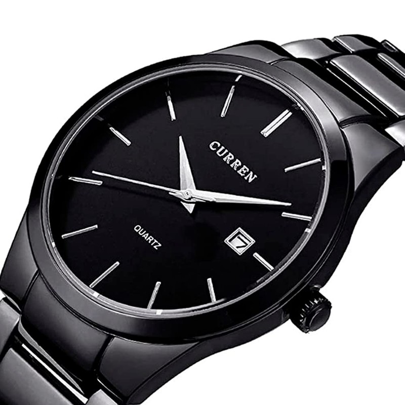 CURREN Reloj de Pulsera para Hombre, Análogo, Diseño Elegante, Formal, Moderno, con Calendario, de Acero Inoxidable, Tamaño Ajustable y Broche de Mariposa