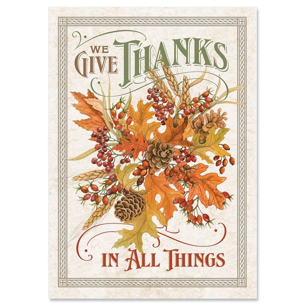 Current We Give Thanks Greeting Cards - Set of 8, 4 Unique Designs, Large 5 x 7 Inch Cards, Sentiments Inside, Envelopes Included