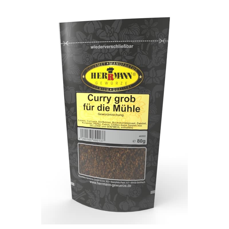 - Ingredients: turmeric, mustard seeds, fenugreek seed, onion, coriander, pepper, cumin, chillies (may contain traces of celery and mustard flour)