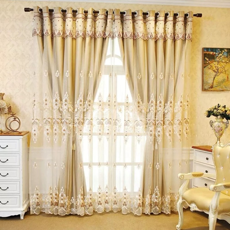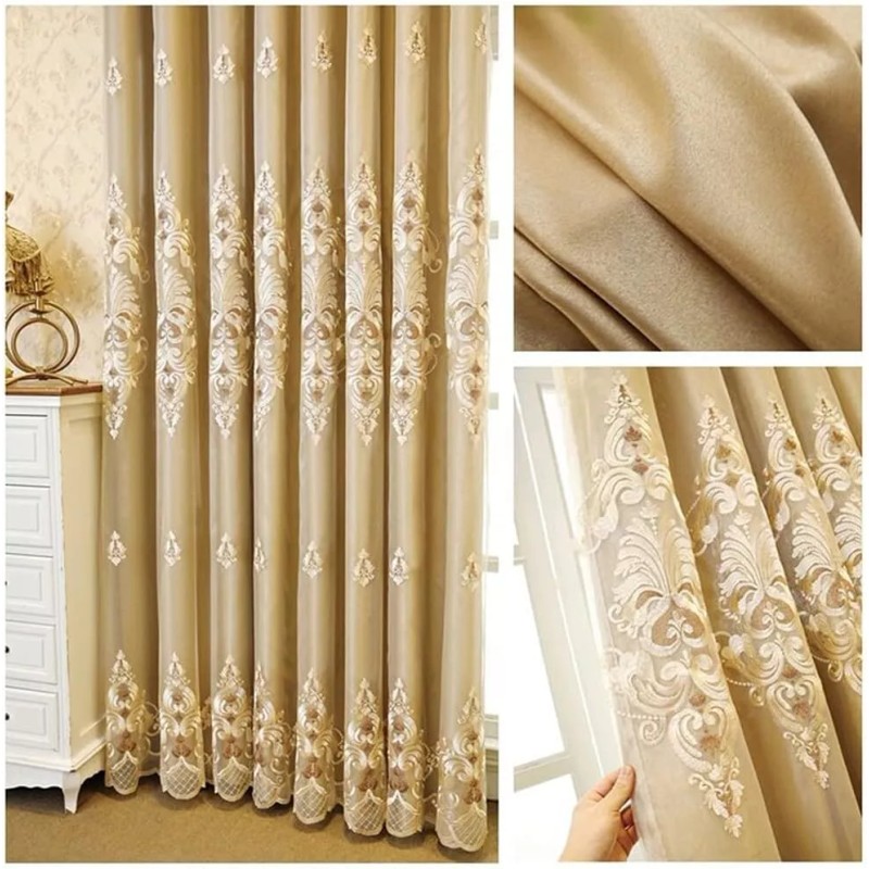 Curshimer Luxury Double Layer Blackout Curtain with Sheer European Embroidery