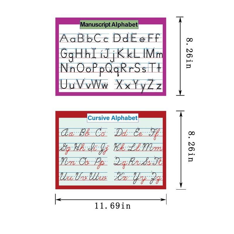 Cursive & Manuscript Alphabet Writing Chart Educational Posters Set 2 Pack, Great for Early Learning Charts for Preschool, Daycares & Home School Teachers