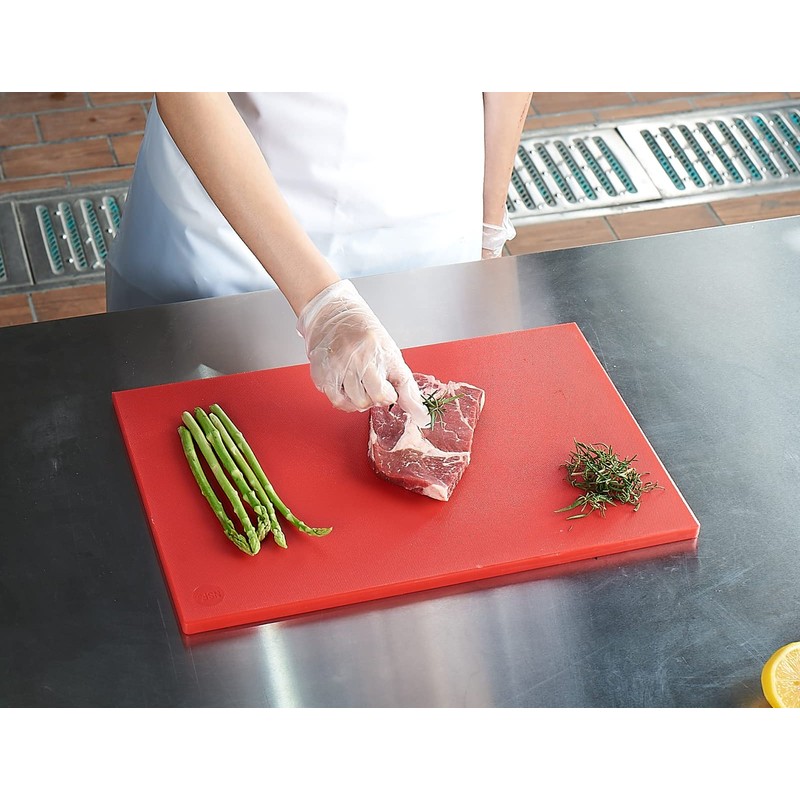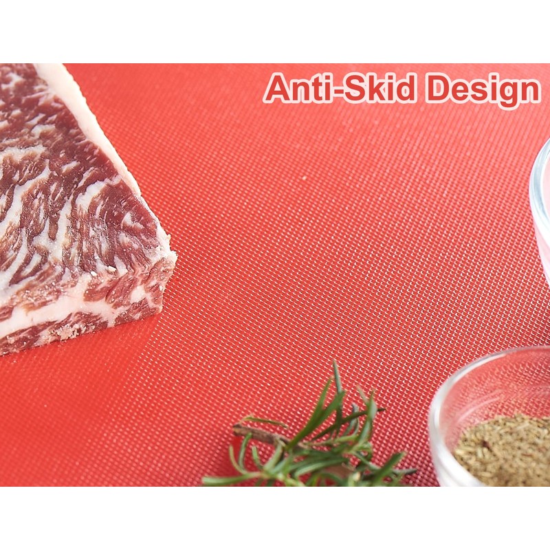- 18 inch x 12 inch x 1/2 inch - This size is ideal for your daily culinary preparation, potent without being too bulky. This red poly cutting board is perfect for a wide variety of tasks and purposes, from slicing meat to seasoning with salt, paper, spice.