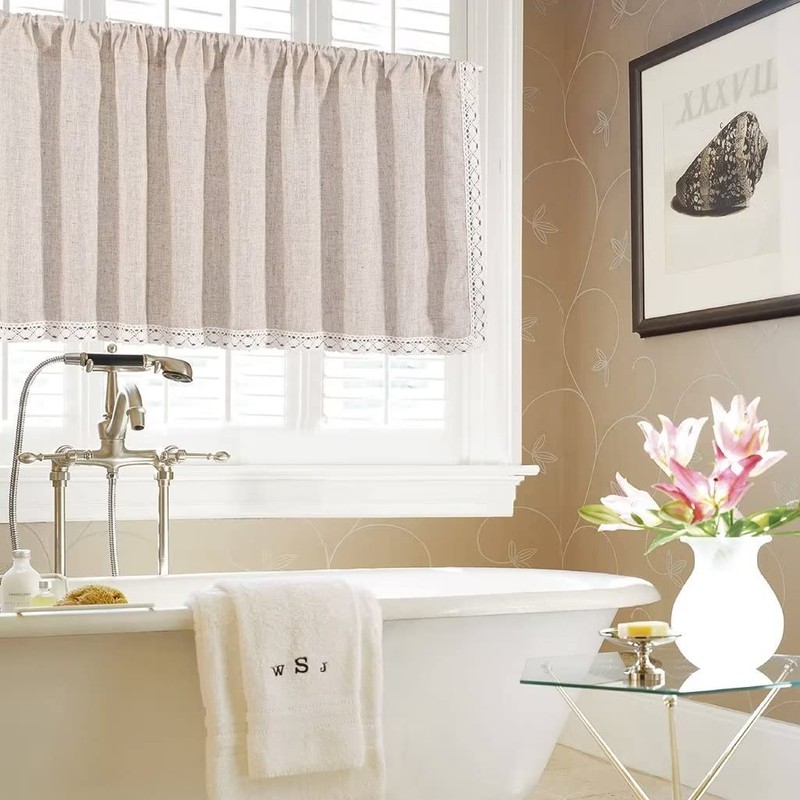 Curtain for Small Windows, Light Blocking, Cafe Curtain, 17.7 inches (45 cm) Length, Northern Europe, Stylish, Linen, Cotton Linen, Small Window Curtain, Divider, Tension Rod, Blindfold, Storage Shelf, Small Window, Kitchen, Cafe, Washroom, Cafe Store, R