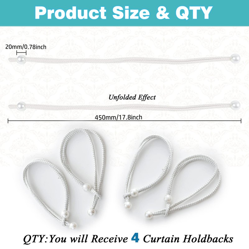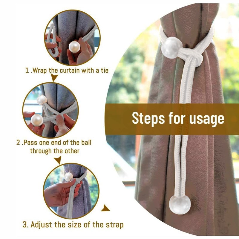 - Curtain Tiebacks The curtain accessory is designed with a high pearl imitation with a diameter of 1 cm, which makes it easy to fix the curtain securely to the wall.