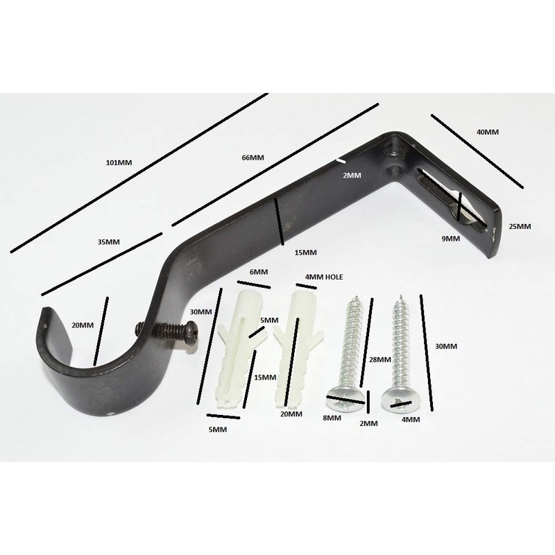 Curtain Rod Holder for Curtain Rods Black with Screws 19 mm