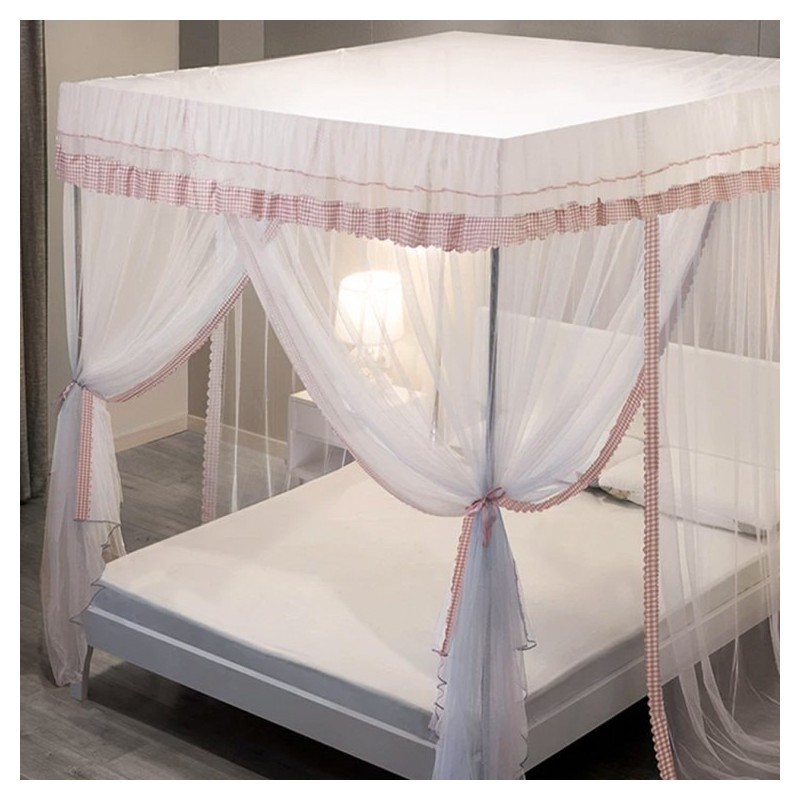 Curtain-style Square Large Bed Mosquito Net 150*200cm Pink Check