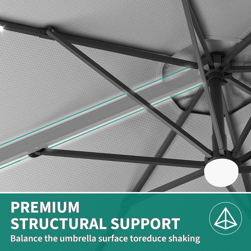 Curtainboro Large Cantilever Patio Umbrella, 10' X 10' Heavy Duty Large Aluminum Outdoor Umbrella with Solar LED Lights, 360° Rotation for Backyard, Deck, Pool, Gray